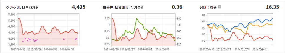 삼일씨엔에스 주가는 현재 4,425원으로 전일 대비 -3.80원 하락했습니다. 삼일홀딩스(외 3인)가 삼일씨엔에스의 주주 중 56.47%를 소유하고 있습니다. 건축소재 기업인 삼일씨엔에스의 시가 총액은 559억 원이며 발행 주식수는 12,731,947주입니다. 외국인 보유 비중은 0.36%이며 장중 거래량은 33,133주입니다. 삼일씨엔에스의 매출액은 507억 원을 기록했습니다.