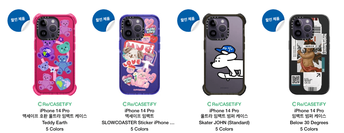 테크 액세서리 브랜드 케이스티파이는 지구의 날을 맞이하여 탄소 중립 달성을 위한 환경보호 프로젝트 "Clean" 컬렉션을 선보이거나 친환경을 널리 알리기 위해 다양한 활동을 펼처온 기업입니다. 단순히 케이스를 제작하는 회사 그 이상의 가치를 실천하고 있는 브랜드이기도 한데요. 매해 친환경 컬렉션이 나오면 완판 신화를 이룬다니 참으로 놀랍지 않을 수가 없습니다. 올해도 어김없이 대규모 행사 할인을 진행하니 이번에 스마트폰 케이스 한 번 바꿔보시는 건 어떨까요. 오늘은 여기서 마치겠습니다. 감사합니다.