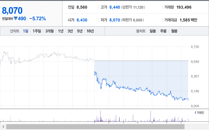 현재 콜마홀딩스의 주가는 8,070원으로, 전일 대비 490원 하락했습니다. 주주 현황을 보면 윤상현과 15명의 주주가 48.31%의 지분을 보유하고 있습니다. 콜마홀딩스는 개인 생활용품을 전문으로 하는 기업이며, 현재 주가는 8,070원입니다. 이 회사의 시가 총액은 2,768억 원이며, 발행된 주식 수는 34,296,259주에 달합니다. 외국인 소유 비율은 17.75%이며, 장중 거래량은 193,823주에 이릅니다. 콜마홀딩스의 매출액은 1,764억 원입니다.