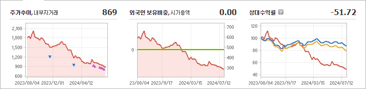 아이윈플러스의 현재 주가는 869원으로, 전일 대비 21원 하락했습니다. 주주 현황을 보면 아이윈(외 3인)이 29.24%의 지분을 보유하고 있습니다. 아이윈플러스는 휴대폰 및 관련 부품을 제조하는 기업으로, 장중 주가는 869원입니다. 회사의 시가총액은 284억 원이며, 발행 주식 수는 32,658,542주에 달합니다. 외국인 소유 비율은 0.00%이고, 장중 거래량은 46,157주를 기록했습니다. 매출액은 100억 원에 이릅니다.
