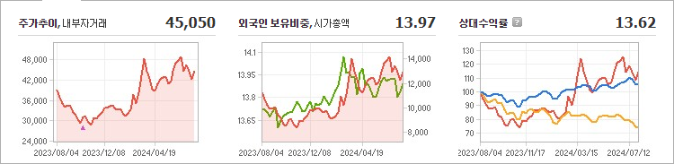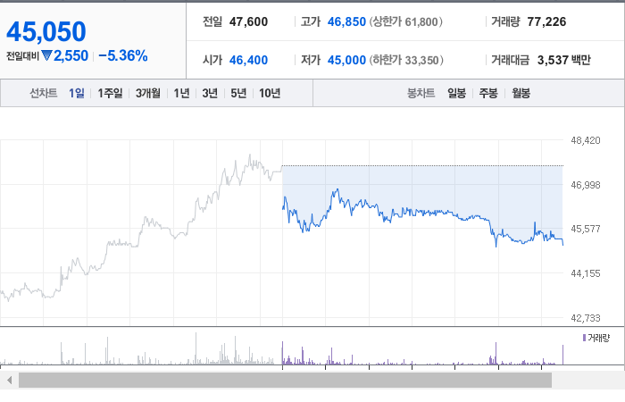 현재 동원시스템즈의 주가는 45,050원으로, 전일 대비 2,550원이 하락했습니다. 주주 현황을 살펴보면, 동원산업과 그 외 4인이 총 83.38%의 지분을 보유하고 있습니다. 동원시스템즈는 용기 및 포장 분야의 기업으로, 현재 주가는 45,050원입니다. 이 회사의 시가 총액은 1조 3,061억 원이며, 발행 주식 수는 28,991,282주입니다. 외국인의 보유 비율은 13.97%이며, 장중 거래량은 77,544주에 달했습니다. 또한, 동원시스템즈의 매출액은 3,091억 원에 이릅니다.