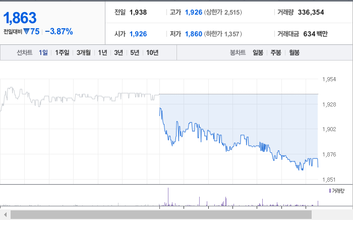 SV인베스트먼트의 현재 주가는 1,863원으로, 전일 대비 75원이 하락한 상태입니다. 주주 현황을 보면 박성호(외 5인)가 27.08%의 지분을 보유하고 있습니다. SV인베스트먼트는 창업투자와 종합금융 서비스를 제공하는 회사로, 현재 주가는 1,863원입니다. 이 회사의 시가총액은 992억 원이며, 총 발행 주식 수는 53,234,000주에 이릅니다. 외국인의 보유 비율은 0.00%이며, 장중 거래량은 341,948주에 달했습니다. 매출액은 297억 원을 기록했습니다.