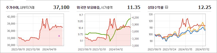 신도리코의 현재 주가는 37,100원으로, 전일 대비 450원이 하락한 수치를 보이고 있습니다. 주주 현황을 살펴보면, 우석형을 포함한 18명이 총 48.69%의 지분을 보유하고 있습니다. 신도리코는 사무기기 전문 기업으로, 현재 장중 주가는 37,100원을 기록하고 있습니다. 이 회사의 시가 총액은 3,649억 원이며, 발행된 주식 수는 10,080,029주입니다. 외국인 투자자의 보유 비율은 11.35%이며, 장중 거래량은 7,016주에 달했습니다. 또한, 신도리코의 매출액은 941억 원에 이릅니다.