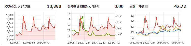 대성에너지의 현재 주가는 10,290원으로, 전일 대비 변동이 없는 상태입니다. 주주 현황을 살펴보면 대성홀딩스와 또 다른 한 명이 총 72.73%의 지분을 보유하고 있습니다. 대성에너지는 가스 관련 기업으로, 현재 주가는 10,290원입니다. 이 회사의 시가 총액은 2,800억 원이며, 발행된 주식 수는 27,500,000주입니다. 외국인의 보유 비율은 0.00%이며, 장중 거래량은 3,537,746주에 달했습니다. 또한, 대성에너지는 3,936억 원의 매출을 기록했습니다.