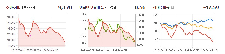 현재 콘텐트리중앙의 주가는 9,120원으로, 전일 대비 310원이 하락했습니다. 주주 현황을 살펴보면 중앙피앤아이와 그 외 2인이 총 42.24%의 지분을 보유하고 있습니다. 콘텐트리중앙은 미디어 기업으로, 현재 주가는 장중 기준으로 9,120원입니다. 이 회사의 시가총액은 1,595억 원이며, 발행된 주식 수는 19,262,308주입니다. 외국인의 보유 비율은 0.56%이며, 장중 거래량은 44,961주에 달했습니다. 또한, 콘텐트리중앙의 매출액은 2,209억 원에 이릅니다.