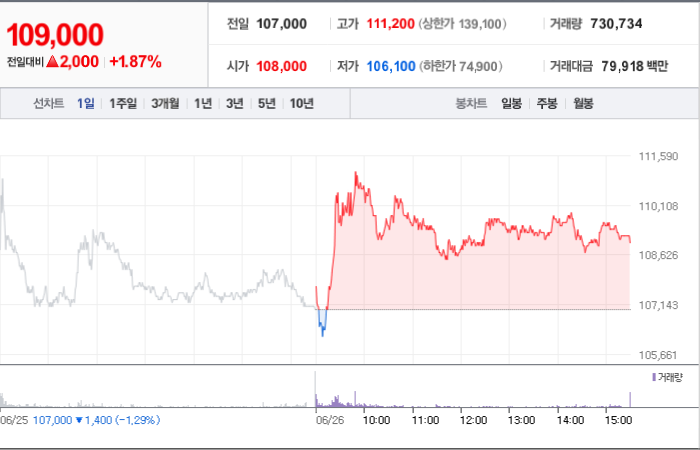 SK이노베이션의 현재 주가는 107,000원이며 전일 대비 -1,400원 하락했습니다. SK이노베이션의 대주주인 SK(외 10인)은 지분의 36.25%를 보유하고 있습니다. 회사는 석유 및 가스 기업으로, 시가 총액은 10조4352억 원이며 발행 주식수는 95,735,590