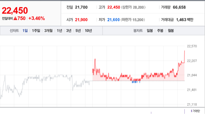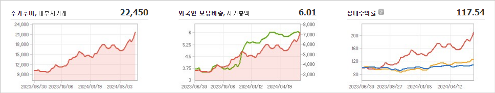 SNT다이내믹스의 현재 주가는 22,450원이며 전일 대비 원의 모습을 보이고 있습니다. 주주현황을 살펴보면, 이 지분 42.27%를 소유하고 있습니다. SNT다이내믹스는 자동차부품 기업으로 장중 기준으로 주가는 22,450원입니다. 시가 총액은 7465억 원이며 발행 주식수는 33,252,697주입니다. 외국인 보유 비중은 6.01%이며 장중 거래량은 67,130을 기록했습니다. 또한, 매출액은 1,141억 원을 달성했습니다.