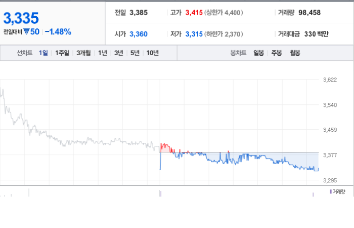 스튜디오미르 주가는 현재 3,335원이며 전일 대비 -50원으로 하락하