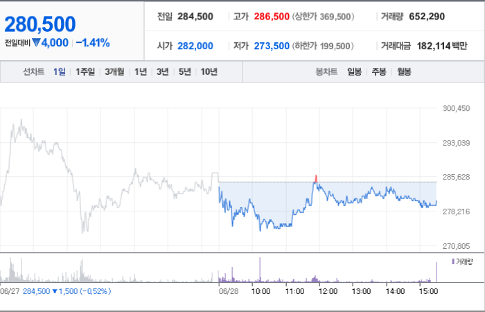 알테오젠의 현재 주가는 280,500원이며 전일 대비 -4,000원 하락했습니다. 주주 중에는 박순재(외 3인)이 20.51%의 지분을 보유하고 있습니다. 이 회사는 바이오 기업으로 시가 총액은 14조9082억 원이고 발행 주식수는 53,148,528주입니다. 외국인 보유 비중은 13.34%이며 장중 거래량은 660,408주입니다. 또한 매출액은 349억 원을 기록했습니다.