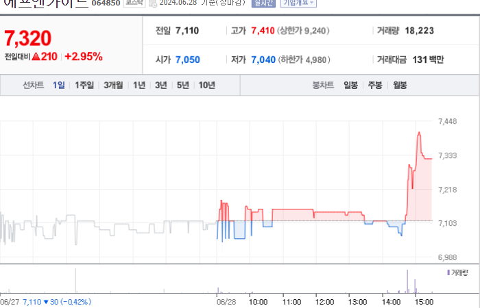 에프앤가이드의 현재 주가는 7,320원으로 전일 대비 -7.58원 하락했습니다. 주주현황을 살펴보면 화천기공(외 13인)이 지분의 38.50%를 보유하고 있습니다. IT 서비스 기업인 에프앤가이드의 시가 총액은 831억 원이며 발행 주식수는 11,350,000주입니다. 외국인 보유 비중은 4.90%이며 장중 거래량은 18,227주를 기록했습니다. 또한 매출액은 76억 원으로 달성했습니다.