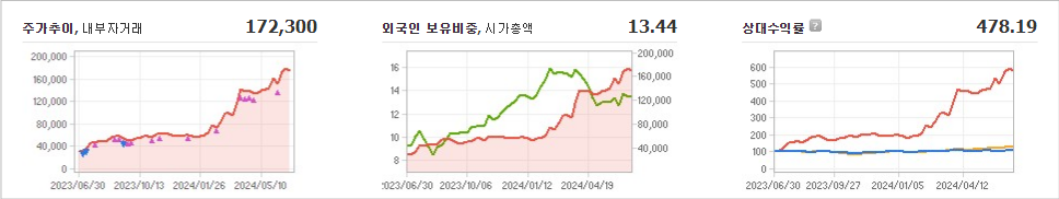 한미반도체의 현재 주가는 172,300원이며 전일 대비 -1,400원 하락했습니다. 주주 구성을 살펴보면 곽동신(외 7명)이 55.32%의 지분을 보유하고 있습니다. 회사는 반도체 및 관련 장비 분야에서 활동하며 시가 총액은 16조7120억 원이고, 발행 주식수는 96,993,634주입니다. 외국인 보유 비중은 13.44%이며 거래량은 716,988주를 기록했습니다. 한미반도체의 매출액은 773억 원을 기록했습니다.