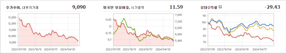 서울반도체의 현재 주가는 9,090원으로 전일 대비 -110원 하락했습니다. 이정훈(외 2인)은 서울반도체의 주주 중 28.53%를 소유하고 있습니다. 회사는 디스플레이 및 관련 부품 분야에 종사하며 시가 총액은 5288억 원이고 발행 주식수는 58,305,400주입니다. 외국인 보유 비중은 11.59%이며 장중 거래량은 157,327주를 기록했습니다. 매출액은 2,416억 원입니다.