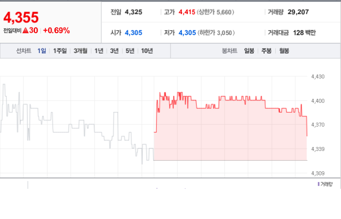 원풍의 현재 주가는 4,325원이며 전일 대비 -70원 하락했습니다. 주주 구성을 살펴보면 서승민(외 13인)이 55.12%의 지분을 보유하고 있습니다. 화학 기업인 원풍의 시가 총액은 523억 원이며 발행 주식수는 12,000,000주입니다. 외국인 보유 비중은 0.66%이며 장중 거래량은 22,205주를 기록했습니다. 또한 매출액은 215억 원을 기록했습니다.