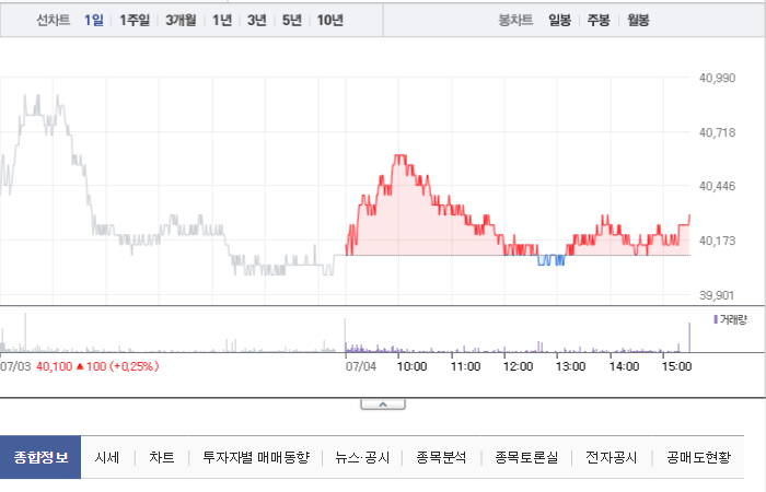 카카오 주가가 현재 40,100원이며 전일 대비 -9.48원 하락했습니다. 주주 중에는 김범수(외 92인)이 24.23%의 지분을 보유하고 있습니다. 카카오는 인터넷 서비스 기업으로, 주가는 40,100원입니다. 시가 총액은 17조8688억 원이며 발행 주식수는 443,395,280주입니다. 외국인 보유 비중은 27.11%이며 장중 거래량은 1,173,859주입니다. 매출액은 19,884억 원을 기록했습니다.