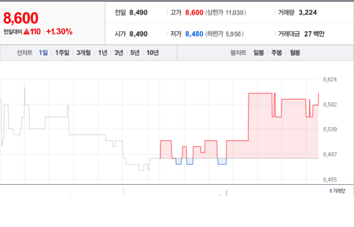 세원정공의 현재 주가는 8,600원으로 전일 대비 -100원 하락했습니다. 주주 구성을 살펴보면 에스엔아이(외 8인)이 47.56% 지분을 보유하고 있습니다. 자동차부품 기업인 세원정공의 시가 총액은 860억 원이며 발행 주식수는 10,000,000주입니다. 외국인 보유 비중은 4.15%이며 장중 거래량은 9,045주를 기록했습니다. 또한 세원정공은 매출액으로 1,195억 원을 달성했습니다.