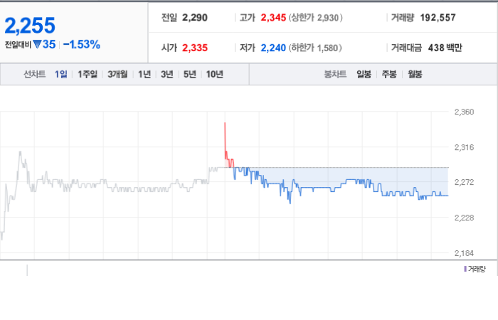 아이즈비전의 현재 주가는 2,290원으로, 전일 대비 -4.78원 하락하고 있습니다. 주주현황을 살펴보면, 이 지분 28.94%를 소유하고 있습니다. 아이즈비전은 통신장비 기업으로, 장중 기준 주가는 2,290원입니다. 시가 총액은 515억 원이며, 발행 주식수는 22,843,356주입니다. 외국인 보유 비중은 0.91%이며, 장중 거래량은 271,997주를 기록했습니다. 또한 매출액은 449억 원을 기록했습니다.