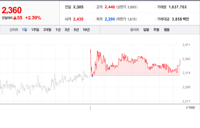 SG글로벌의 현재 주가는 2,305원으로 전일 대비 -5.34원 하락했습니다. 에스지고려(외 2인)이 주주현황의 58.53%를 소유하고 있습니다. 이 회사는 자동차부품 기업으로 시가 총액은 1061억 원이며 발행 주식수는 44,964,143주입니다. 외국인 보유 비중은 1.04%이고, 장중 거래량은 1,420,972주로 기록되었습니다. 또한, 매출액은 253억 원을 기록했습니다.