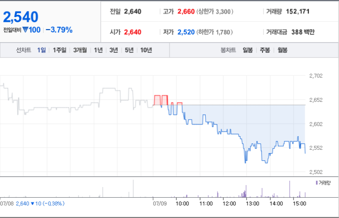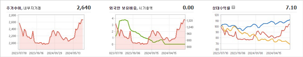방림 주식의 현재 가격은 2,640원이며 전일 대비 -10원 하락했습니다. 주요 주주인 서재희(외 6인)은 지분의 39.05%를 소유하고 있습니다. 방림은 섬유 및 의복 기업으로, 현재 주가는 2,640원이고 시가 총액은 1,075억 원입니다. 발행 주식수는 42,314,090주이며 외국인 보유 비중은 0.00%입니다. 장중 거래량은 56,288주이며 매출액은 536억 원을 기록했습니다.