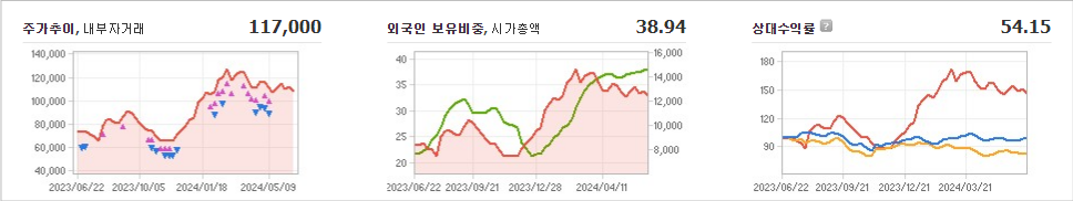 SOOP 주가는 현재 117,000원이며 전일 대비 -5.19원 하락했습니다. 쎄인트인터내셔널을 포함한 외국인 6인은 SOOP의 지분 중 26.33%를 소유하고 있습니다. SOOP는 인터넷 서비스 기업으로 시가 총액은 1조3334억 원이며 발행 주식수는 11,494,767주입니다. 외국인 보유 비중은 38.94%이며 장중 거래량은 356,508주를 기록했습니다. 또한, SOOP는 매출액으로 949억 원을 달성했습니다.