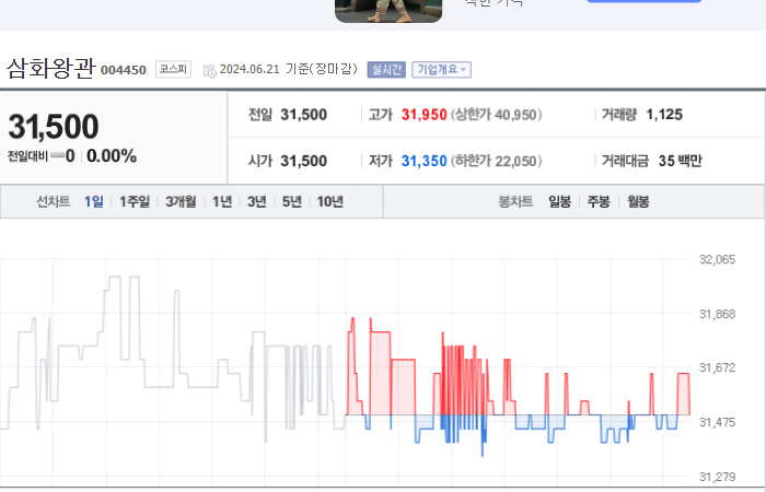 삼화왕관의 현재 주가는 31,500원이며 전일 대비 -3.08원 하락했습니다. 회사의 지분 구조를 살펴보면, 주요 주주인 이 지분은 51.34%를 소유하고 있습니다. 삼화왕관은 용기 및 포장 기업으로, 현재 주가는 31,500원이며 시가 총액은 679억 원이고 발행 주식수는 2,154,379주입니다. 외국인 보유 비중은 4.00%이며 장중 거래량은 1,625주입니다. 또한, 매출액은 377억 원을 기록했습니다.
