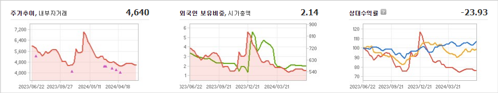 한익스프레스의 현재 주가는 4,640원이며 전일 대비 -1.49원 하락하고 있습니다. 이석환(외 4인)은 주주현황에서 47.11%의 지분을 보유하고 있습니다. 육상운수 기업인 한익스프레스의 시가 총액은 551억 원이며 발행 주식수는 12,000,000주입니다. 외국인 보유 비중은 2.14%이며 장중 거래량은 108,058주를 기록했습니다. 또한, 한익스프레스는 매출액으로 1,737억 원을 기록했습니다.