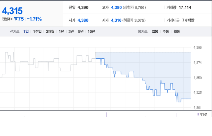 DSR의 현재 주가는 4,390원으로 전일 대비 -20원 하락했습니다. DSR의 대주주인 DSR제강(외 12인)은 지분의 68.33%를 소유하고 있습니다. 이 회사는 금속 및 광물 기업으로 시가 총액은 690억 원이며 발행 주식수는 16,000,000주입니다. 외국인 보유 비중은 0.56%이며 장중 거래량은 8,103주를 기록했습니다. 또한 매출액은 681억 원을 기록했습니다.